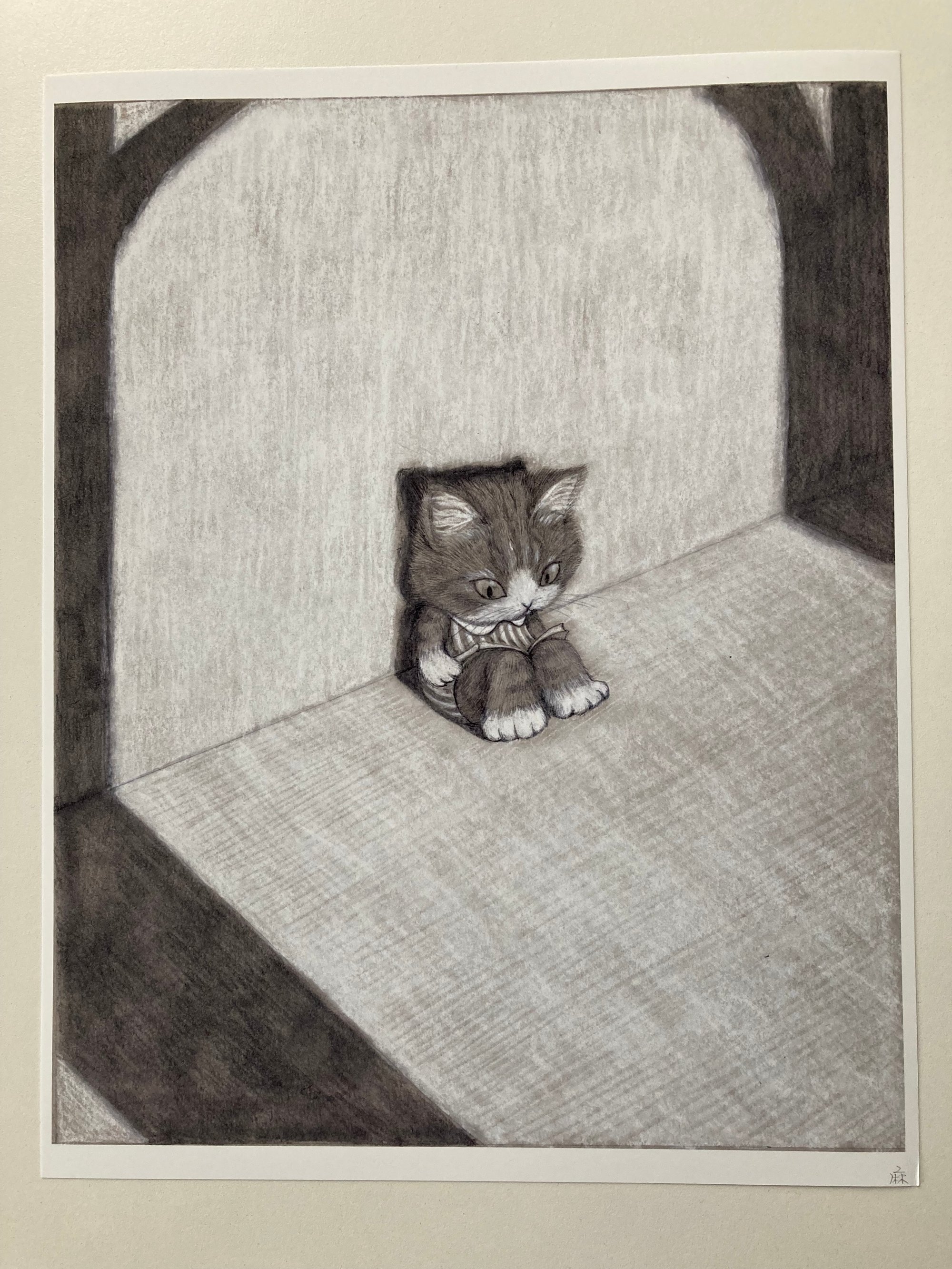The little cat has found the perfect spot to enjoy a good book—quiet, warm, and bathed in sunlight. A cozy, secret retreat for peaceful moments.